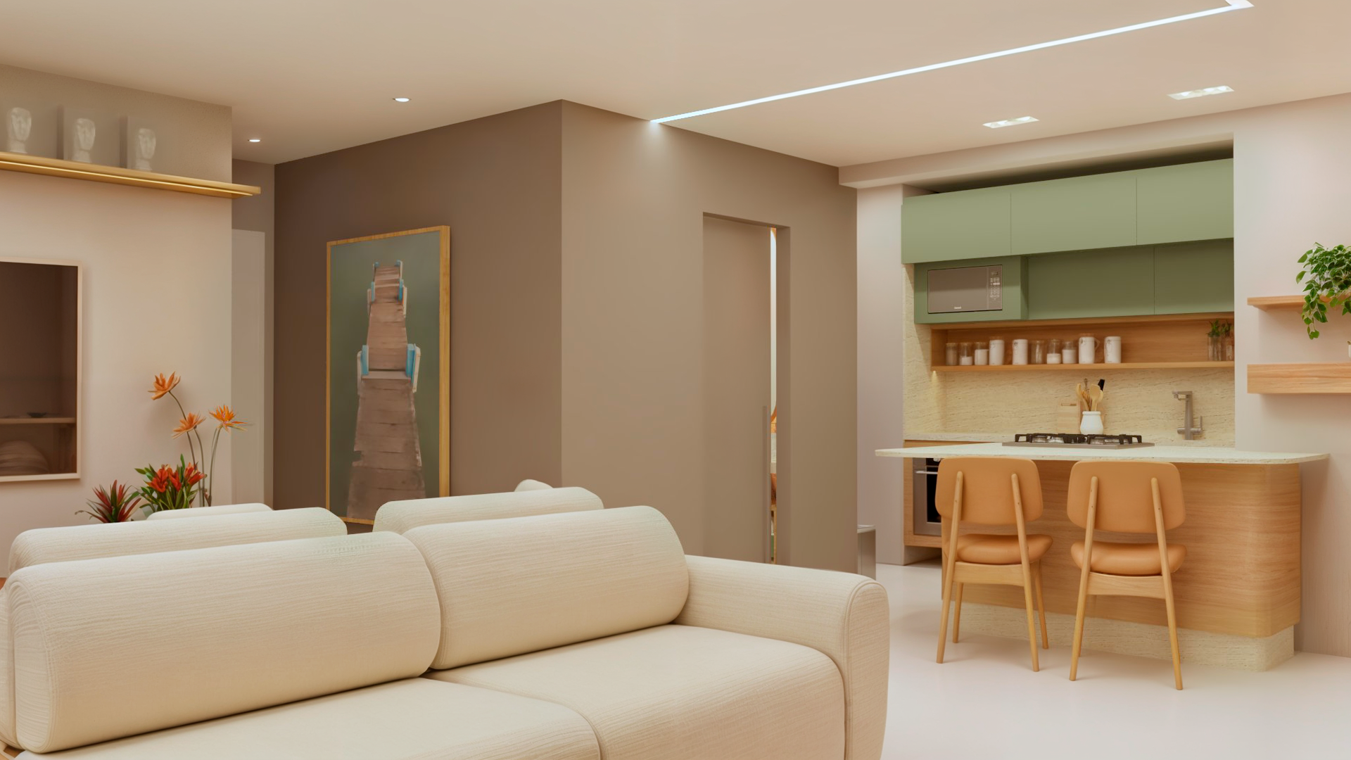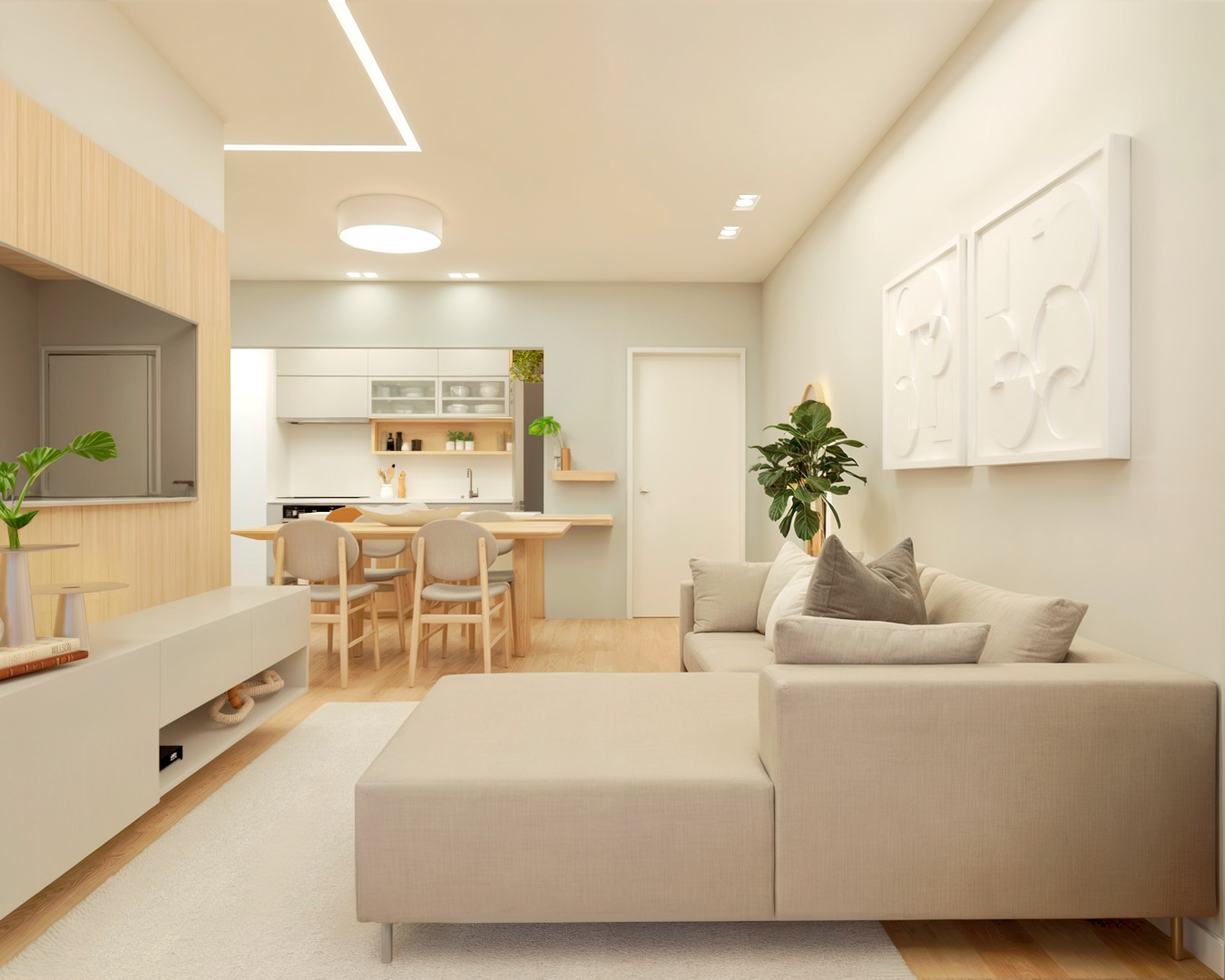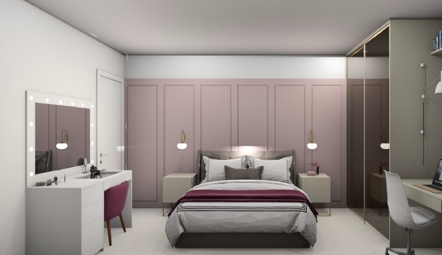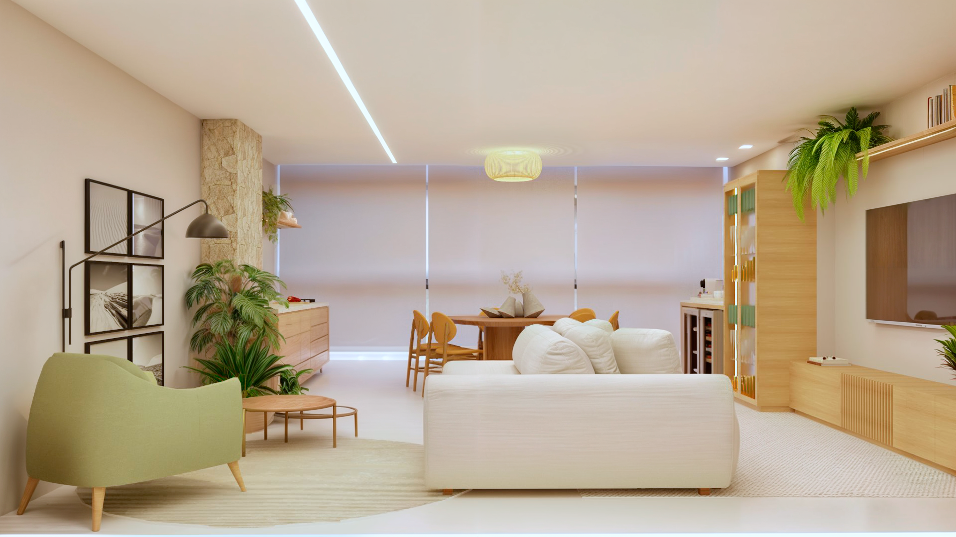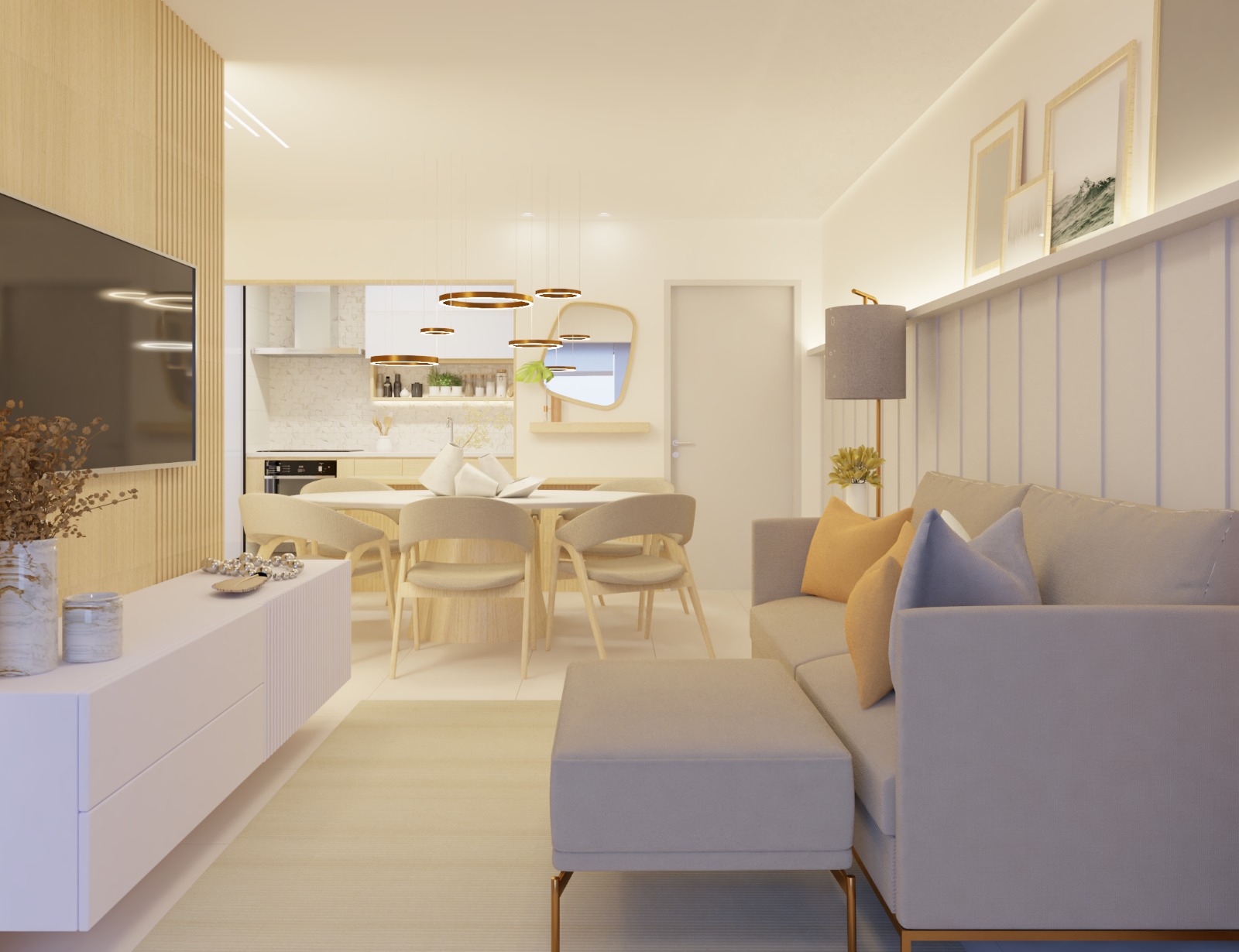 Desenvolvimento do layout. Funcionalidade, circulação e bem-estar pensados para o seu dia a dia.