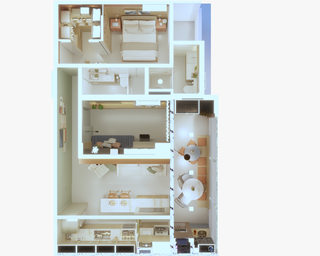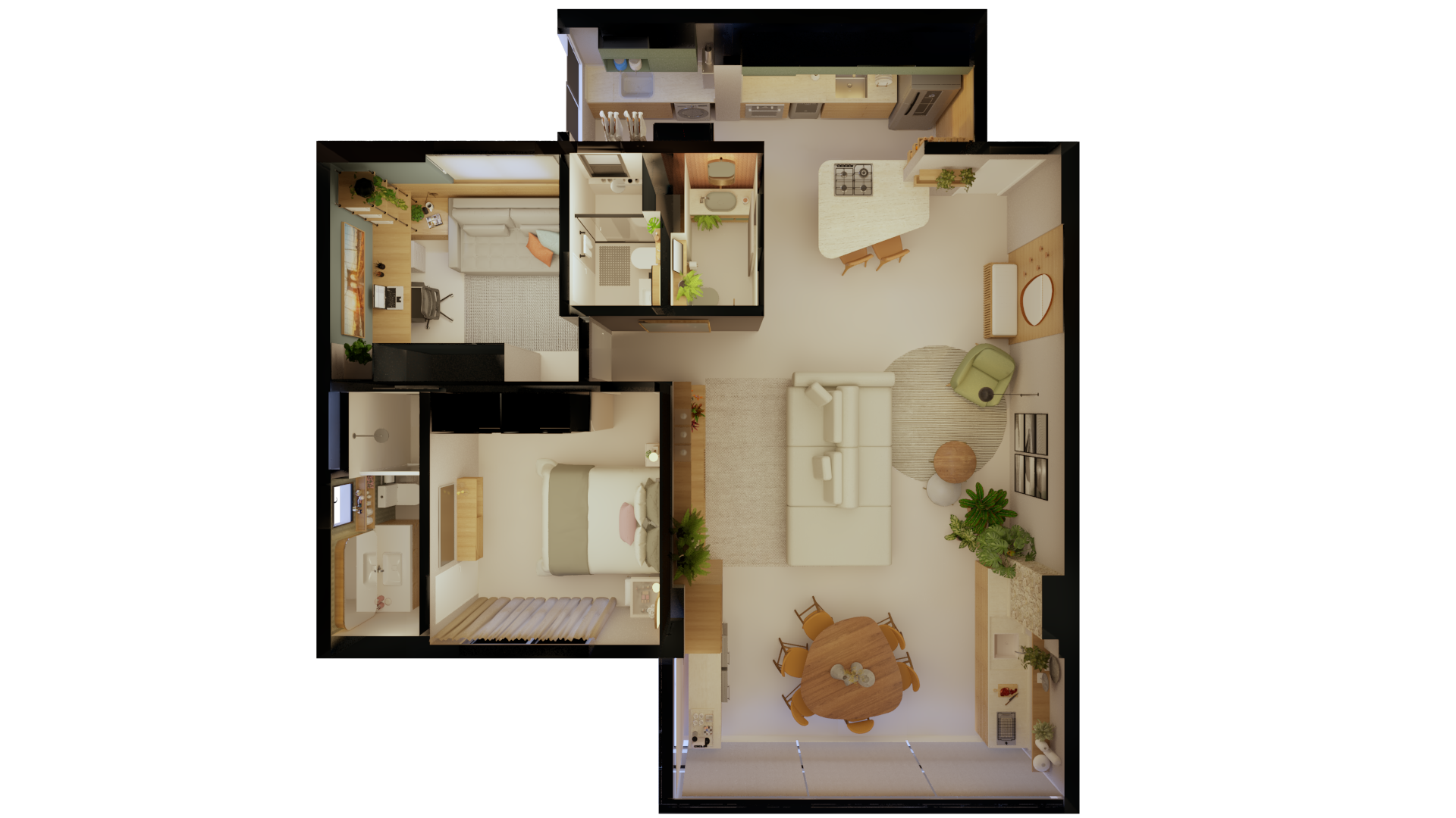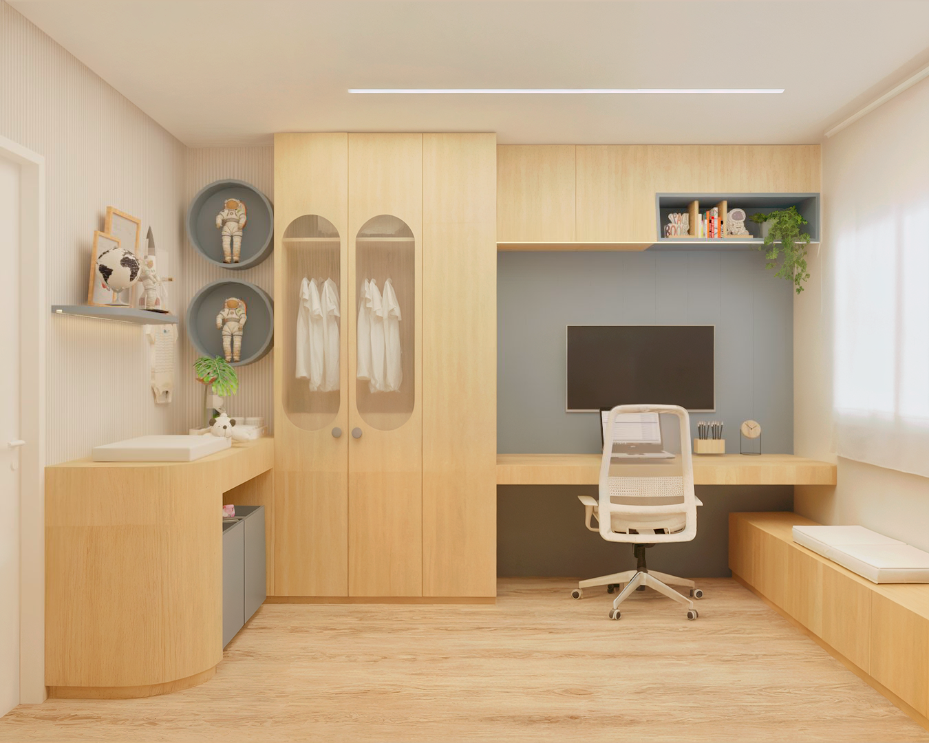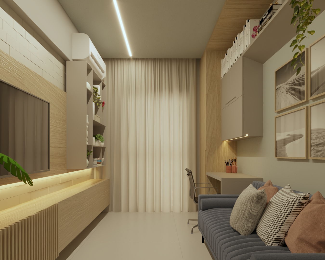 Desenvolvimento do layout. Funcionalidade, circulação e bem-estar pensados para o seu dia a dia.