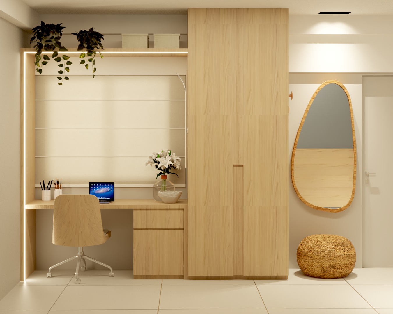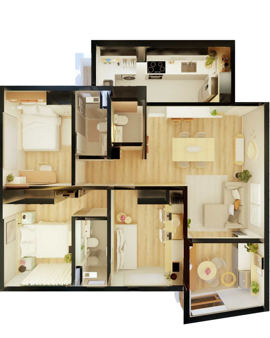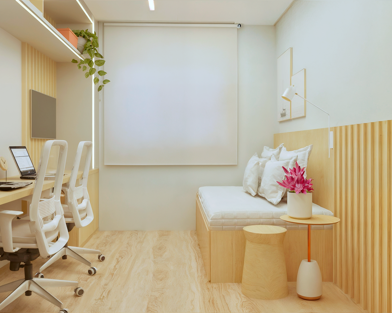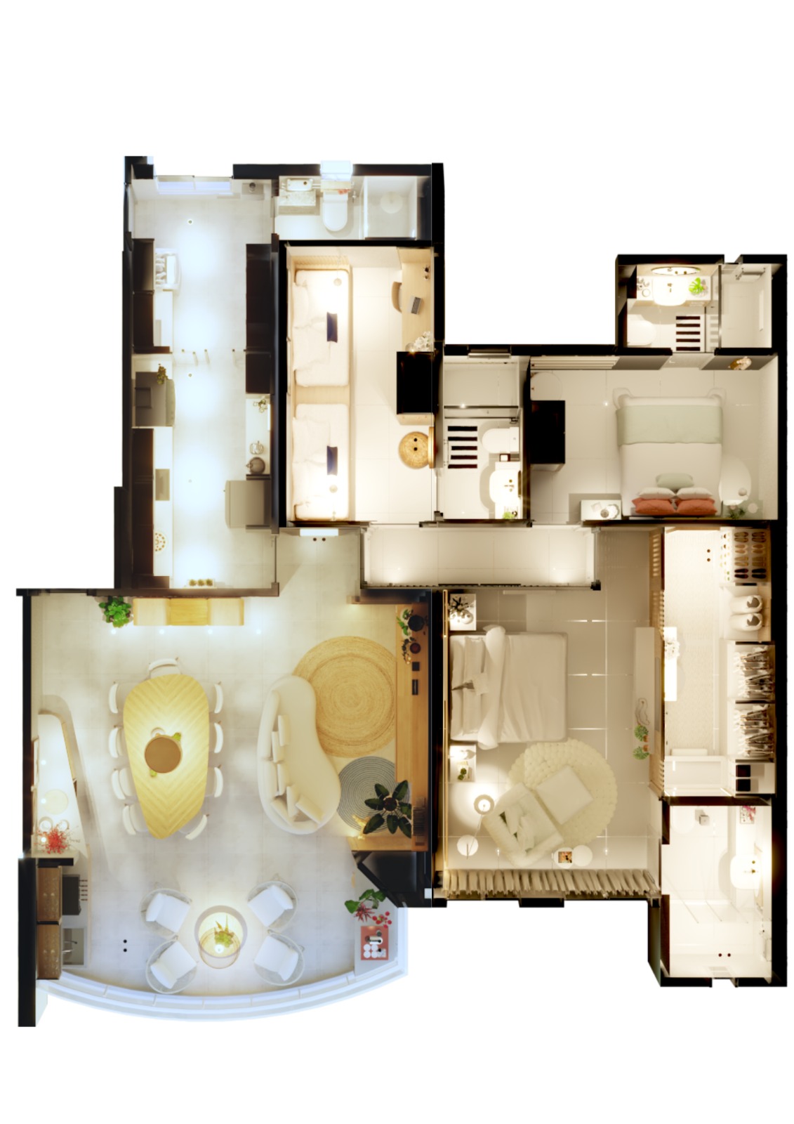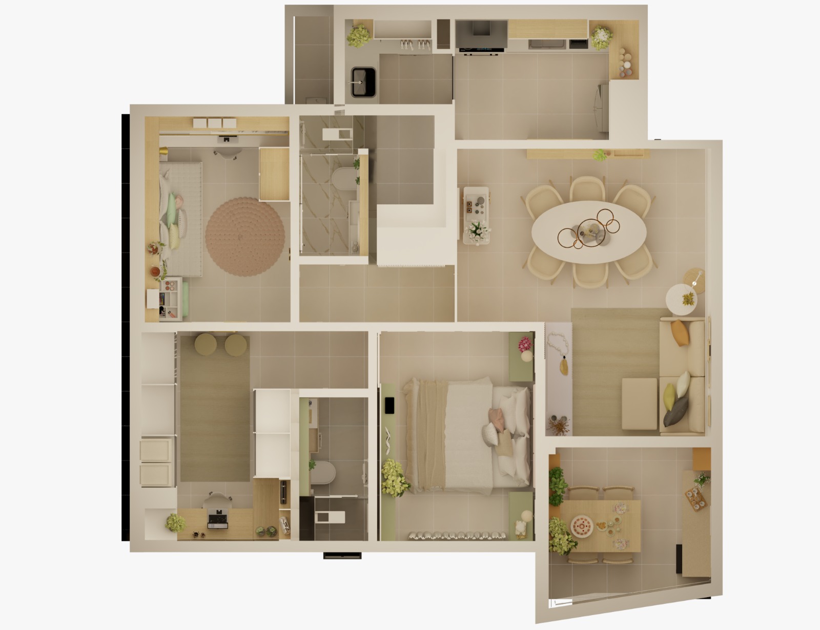 Desenvolvimento do layout. Funcionalidade, circulação e bem-estar pensados para o seu dia a dia.