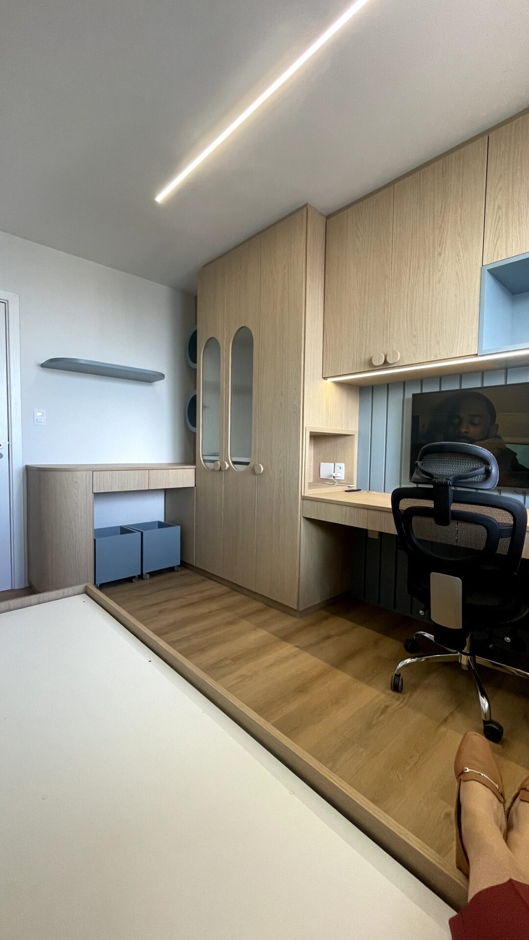 Em um projeto de reforma avaliamos as condições do imóvel e as necessidades dos clientes para alcançar as melhores soluções. Já a ambientação ou projeto de interiores, é um projeto de humanização dos espaços, onde pensamos no local de forma funcional, organizada e agradável esteticamente de acordo com as características, gostos e desejos dos envolvidos. Desenvolvemos uma decoração que caracterize essa família gerando a sensação de identificação e acolhimento.