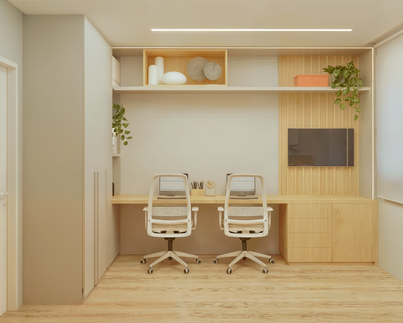 Numa consultoria avaliamos o ambiente e as necessidades do cliente para alcançar as melhores soluções. Esse processo é realizado através de uma proposta com menos desenhos técnicos e soluções mais práticas, como utilização de móveis já prontos, no lugar da reforma algo mais pontual como pintura, papel de parede... São soluções mais rápidas de serem planejadas e também executadas. Um resultado mais imediato.